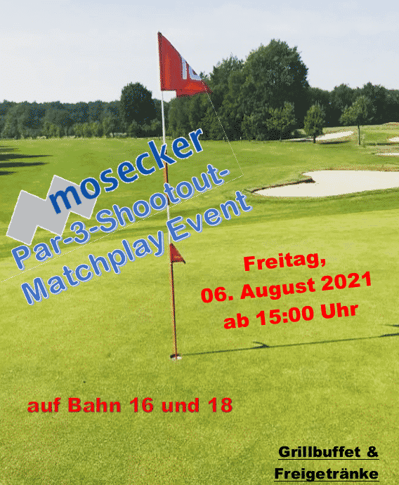 Liebe Mitglieder und Gäste, nach einem Jahr Corona-Unterbrechung findet am Freitag, 06. August 2021 wieder das beliebte Mosecker Par 3 Shootout-Matchplay statt. Ab 15:00 Uhr wird auf unseren Bahnen 16 & 18 wieder der treffsicherste Schütze aus 100 Metern ermittelt. Bei sommerlicher Musik und leckerem Grillbuffet bietet unsere Terrasse einen interessanten Platz, um die Annäherungsschläge…